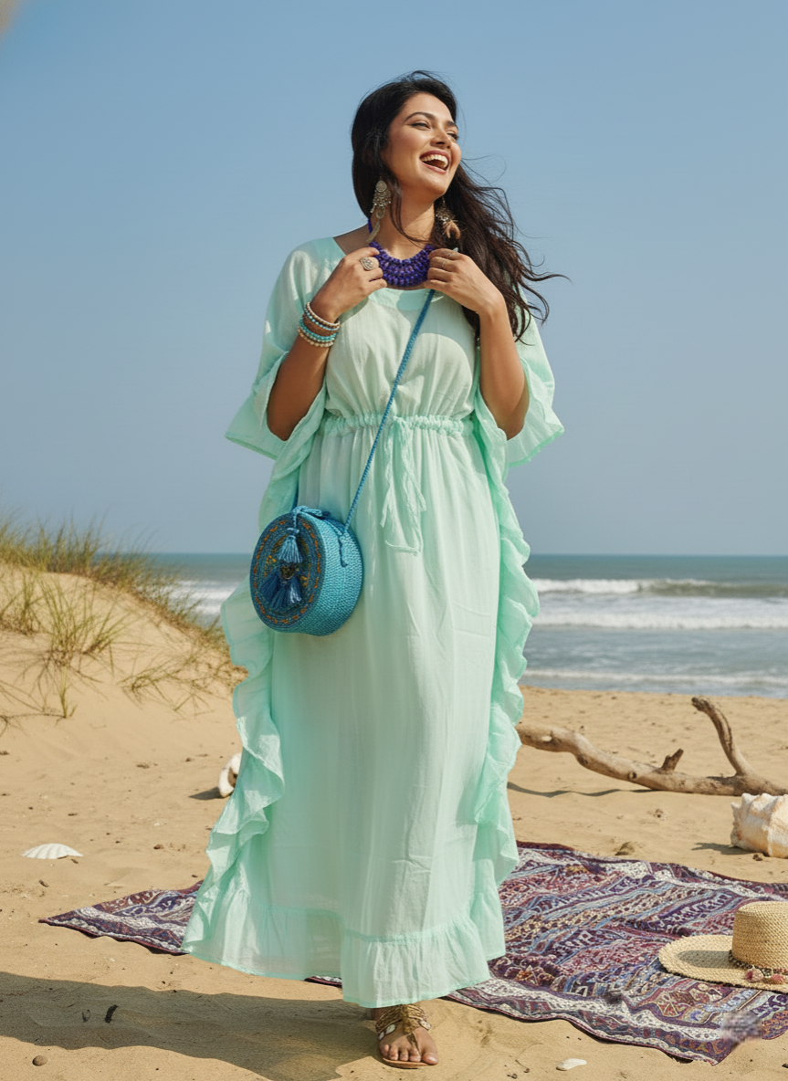 You will have a great choice to select from exclusive collections like Ajrakh Kaftans, Shibori Tie and Dye Kaftan, Hand-embroidered Kaftans, Tunic Kaftans, Cool Short Kaftan Tops Long Kaftan Maxi Dresses, Shirt Dress Kaftans and Cotton Kaftan from India and other designs that are well-suited for your regular casual wear needs to your special evening wear occasion.