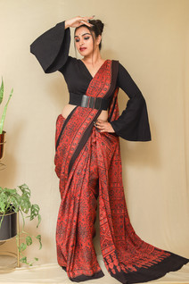 (Ajrakh modal silk sarees; Image Source: The Loom Studio)