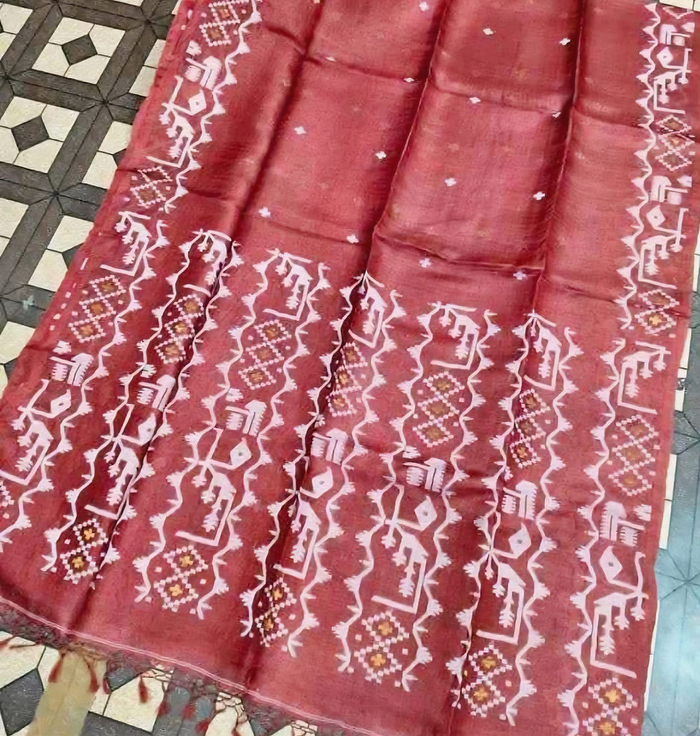 Hand block printing is a traditional innovative printing technique where intricate designs are carved onto wooden blocks, which are then dipped in dye and stamped onto the fabric. A pure hand block Tussar silk saree is not just a piece of clothing but a work of art that represents the rich heritage and craftsmanship of Indian artisans. Each piece is unique due to the manual process, ensuring no two sarees are exactly alike.
