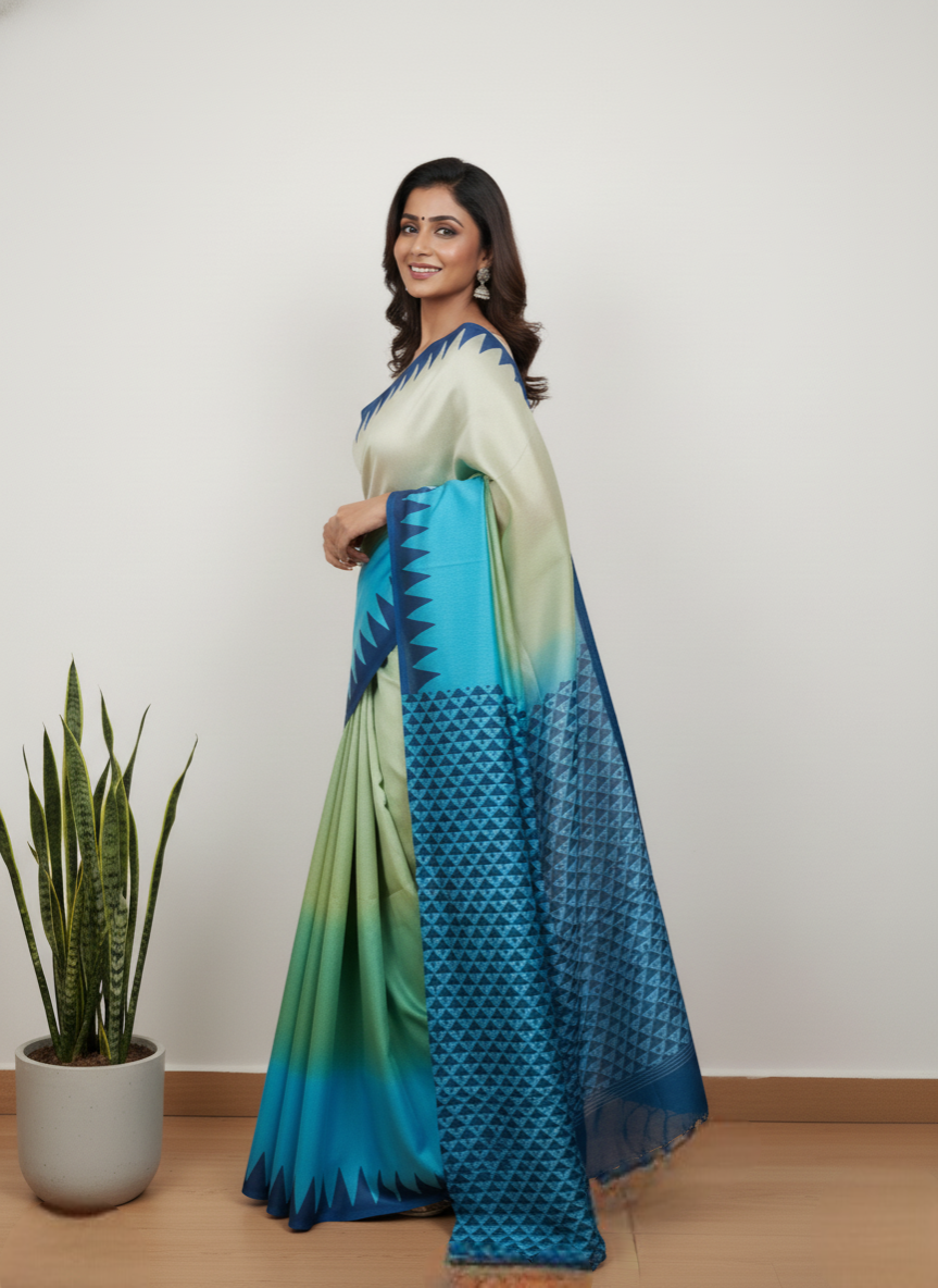 Crafted Essence Pure Murshidabad Hand Block Print Silk Saree