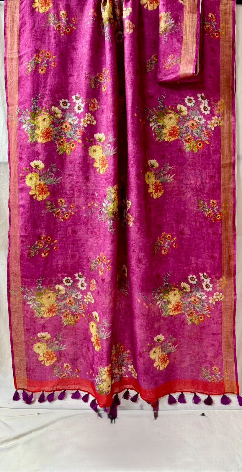 Orchid Blossom Resham Silk Muslin Jamdani Saree