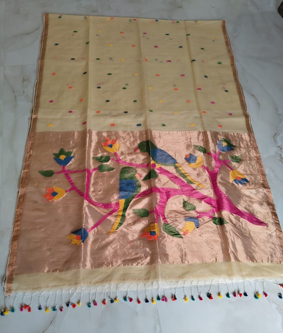 Ragini Pure Hand Block Printed Zari Tussar Silk Saree