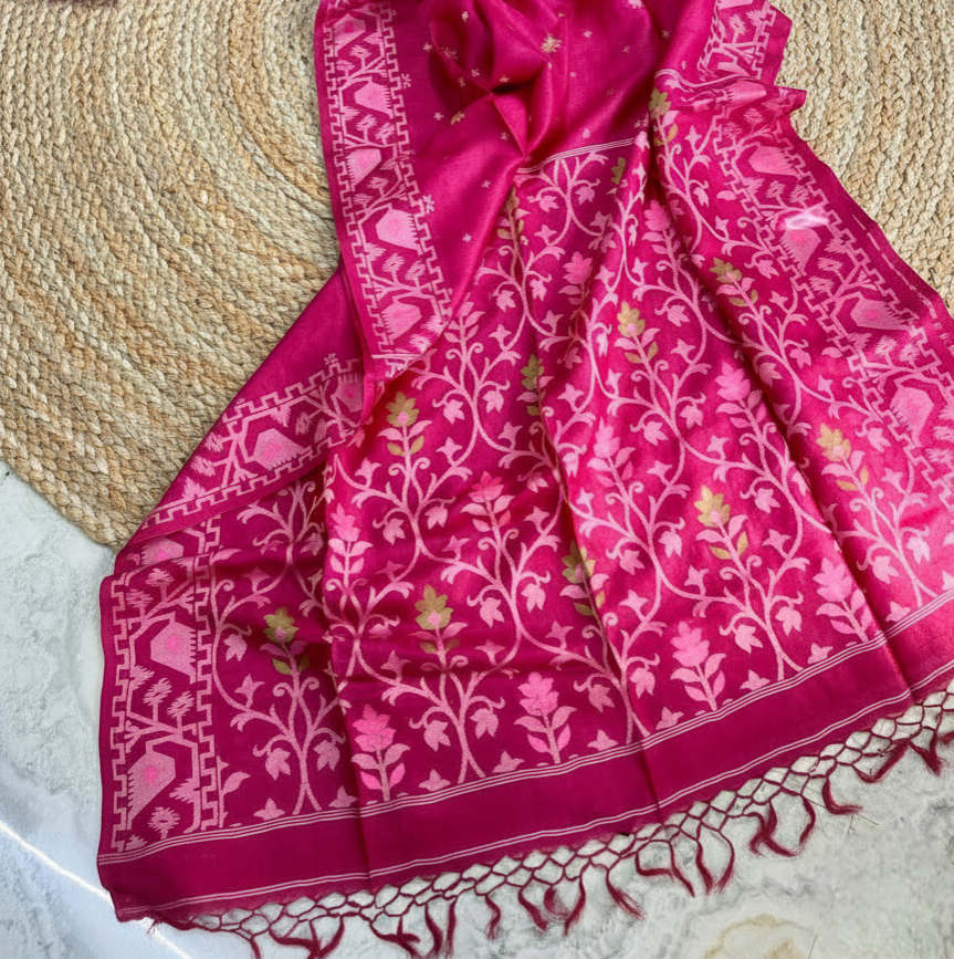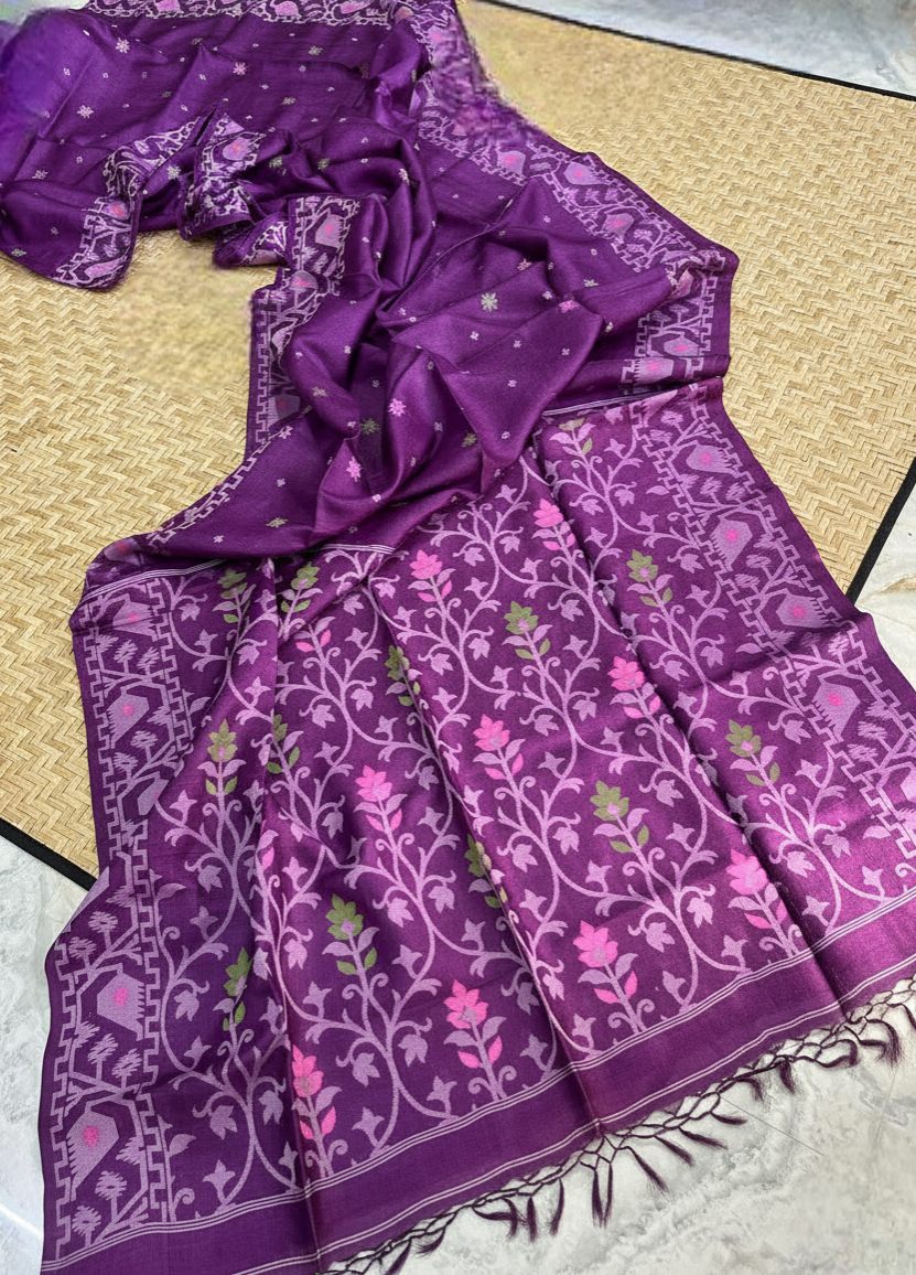 Ruby Calm Pure Handwoven Tussar Silk Jamdani Saree